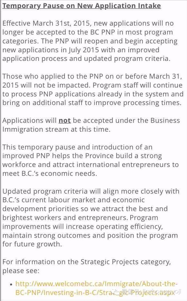 今天BC省提名官方网站 Welcome BC放出消息称:暂停